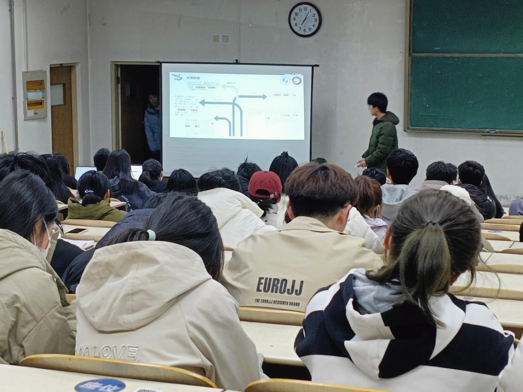 宣讲开始,主讲人先对“互联网+”进行了简要介绍,让同学们从整体上认识大赛。接着介绍往届学长学姐获得的奖项并介绍大赛获奖率,以激发同学们的参赛激情。然后主讲人对赛道进行解读,让同学们具体了解参赛方式以及参赛项目和赛事进程,包含所需材料和比赛官方评价项目的思维,强调了参加大赛需要注意的核心事项。为了更好的筹备此届互联网➕大赛,科创孵化园竞赛部负责人刘奕萱特意为各班班委讲解了此次“互联网+”的注意事项和每个班具体的相关事宜,让班委对此次大赛的具体事项有了更进一步的了解,也得以让此次大赛在班委的带领下更加高效地进行。